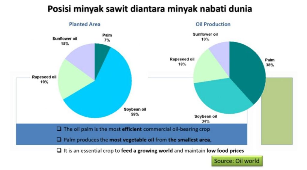 Kampanye hitam dengan lingkungan hidup dianggap merusak hutan. Padahal karena sawit bisa menghasilkan minyak nabati 6 kali lipatnya kedelai pada luasan sama. Kedelai dan bunga matahari mereka lebih luas lagi menggundul hutan.
